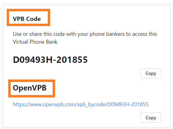 You should now see the VPB Code and OpenVPB link (if you opted to publish them to OpenVPB.com) -- make sure to both write them down for record-keeping and share to others in your committee so they can start making calls.